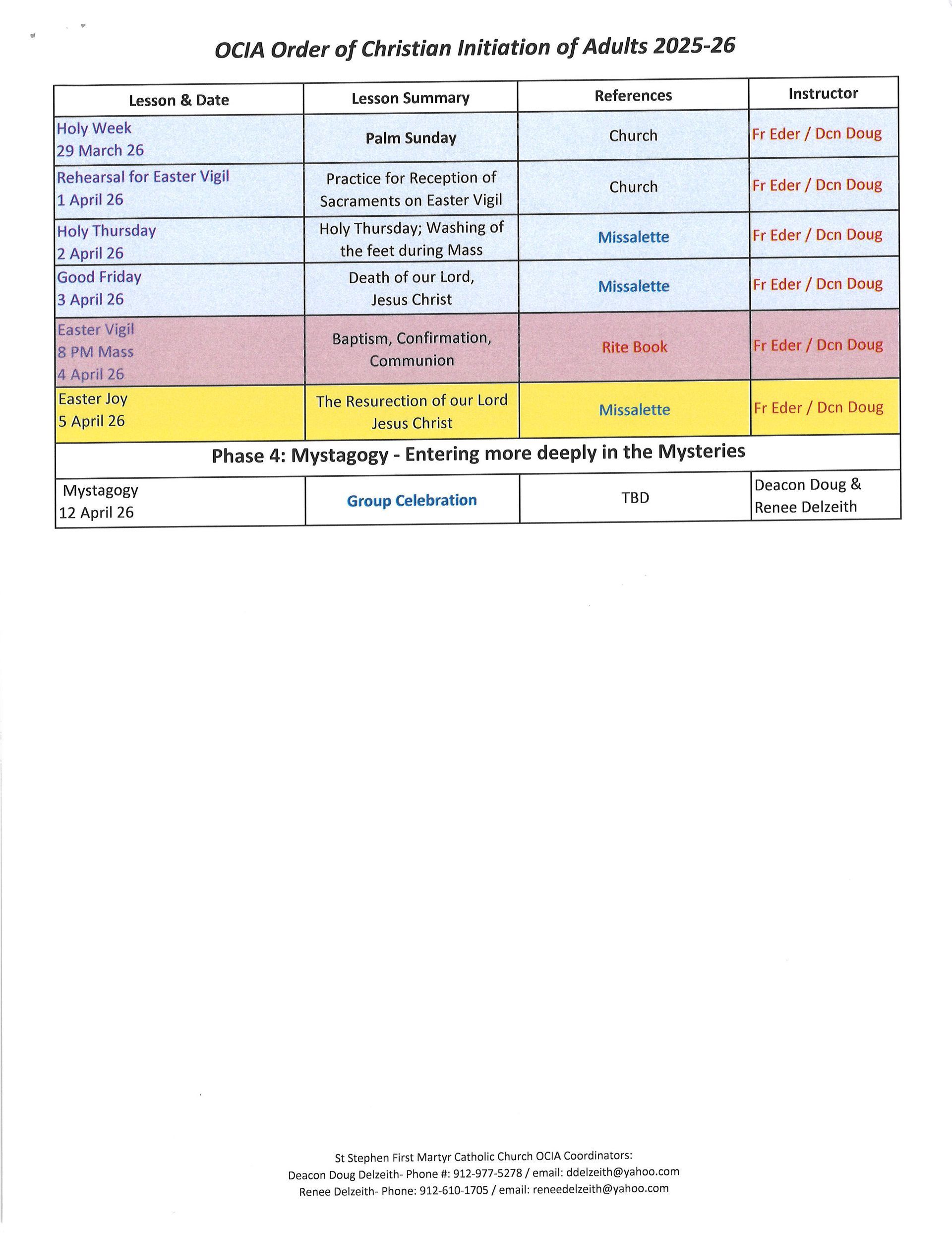 This is a time of reflection and celebration after the formal reception into the Catholic Church. Mystagogia means “leading into the mystery” and it is a time to explore the deep mystery of our faith and go forth to help build the reign of God on Earth as new members of the faithful.